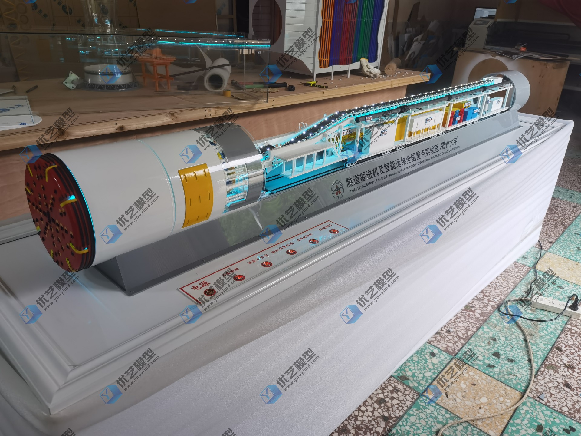 TBM盾構(gòu)機(jī)教學(xué)模型是湖南省優(yōu)藝模型與鄭州大學(xué)合作研發(fā)制作的,旨在為教育和專業(yè)培訓(xùn)提供高質(zhì)量的教具資源。
