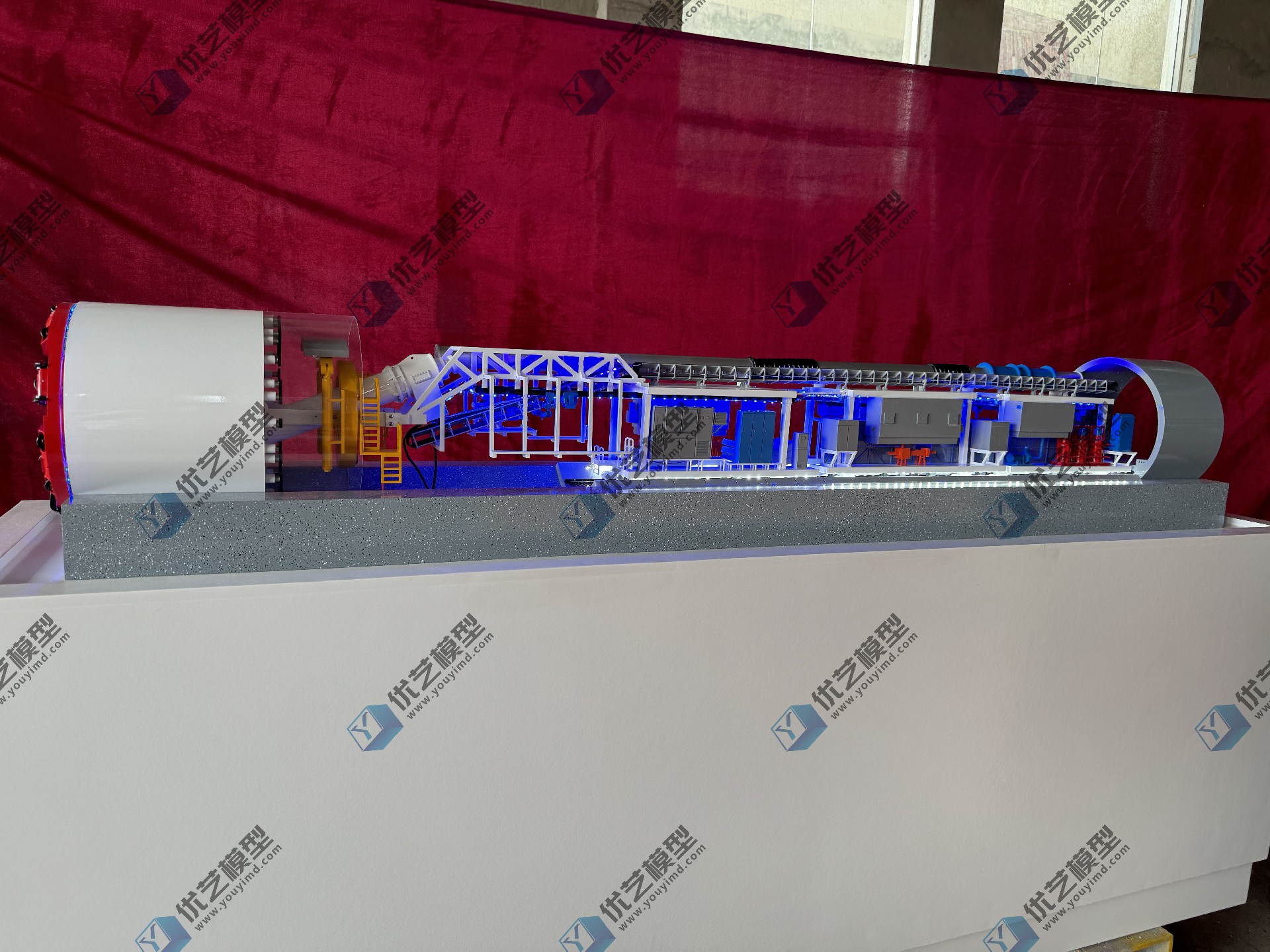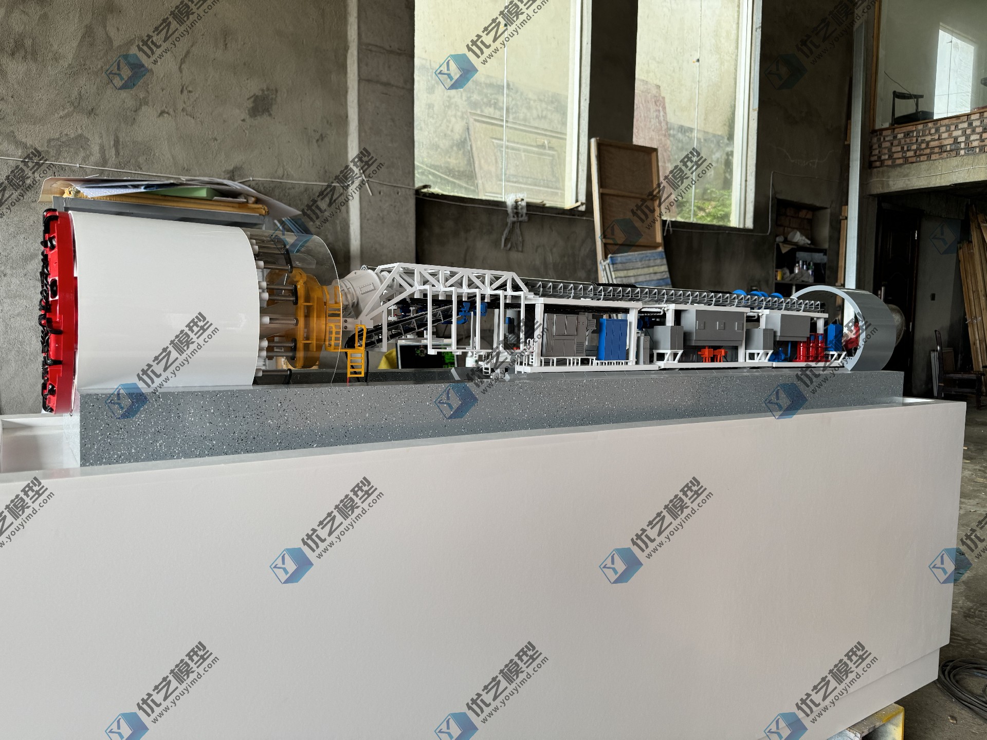 土壓平衡式盾構(gòu)機模型是湖南省優(yōu)藝模型制造有限責(zé)任公司,根據(jù)業(yè)主要求定制模型設(shè)備,土壓平衡式盾構(gòu)機模型是一種高度仿真的教學(xué)和培訓(xùn)工具,專為高校教育及施工企業(yè)培訓(xùn)設(shè)計。該模型全長1.8米,盾體直徑為0.25米,通過動態(tài)演示,使使用者能夠直觀地理解盾構(gòu)施工法的工作原理,及其在不同地質(zhì)條件下的應(yīng)用。