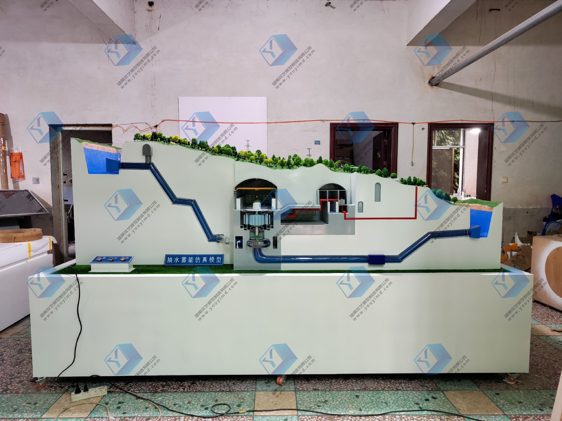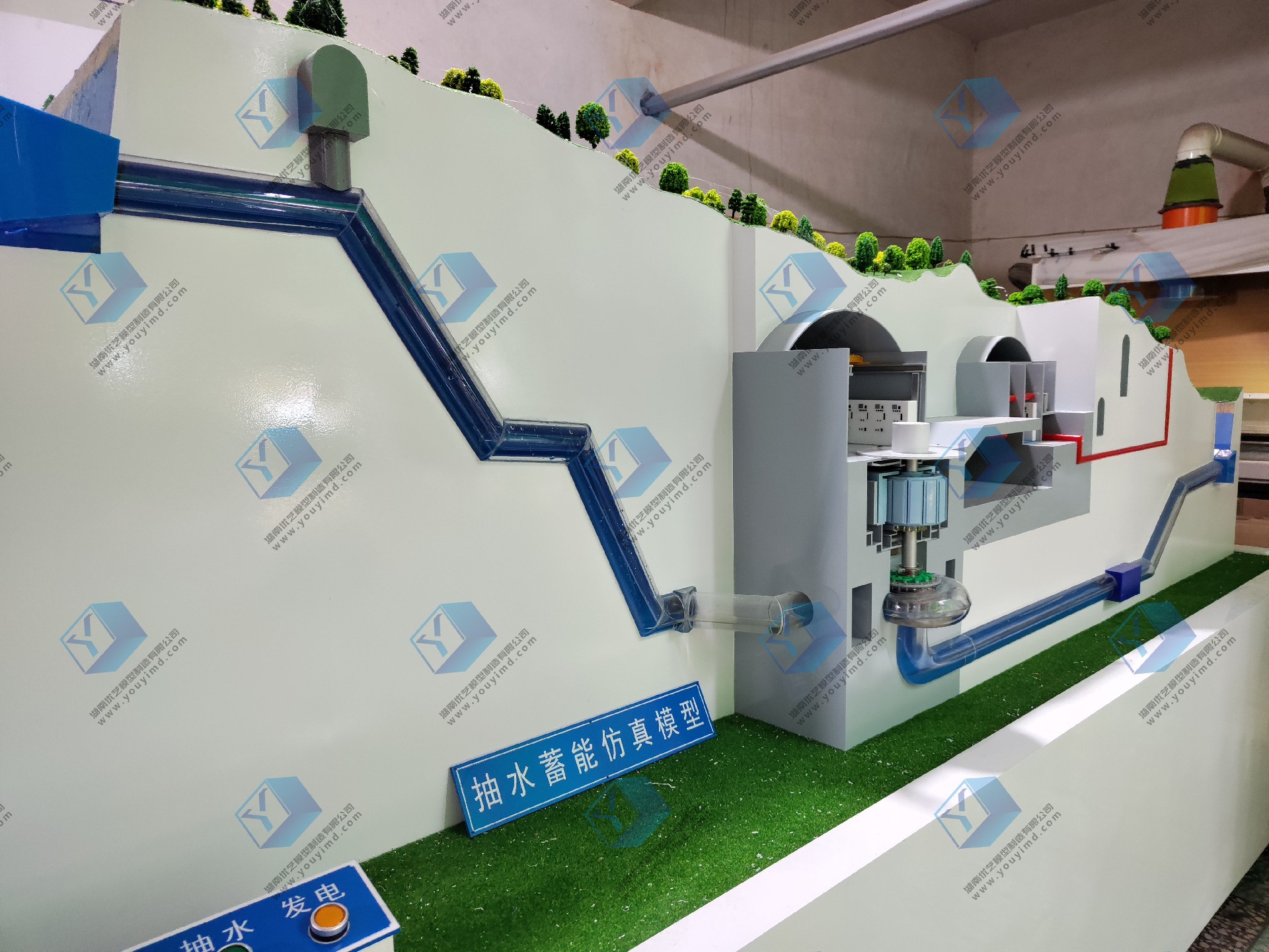 抽水蓄能水電站動態(tài)剖面結(jié)構(gòu)仿真模型, 是湖南省優(yōu)藝模型研發(fā) 、設(shè)計(jì)、制作的仿真教學(xué)實(shí)訓(xùn)設(shè)備, 設(shè)備長 4米 寬1.2米。整體采用空面結(jié)構(gòu)展示, 展示出上水位、 地下廠房、水輪發(fā)電機(jī)、下水位、 地面部分制作出山體地形綠化、鐵塔電能輸送線路等。 設(shè)備整體采用真實(shí)過水、 模擬進(jìn)水管道、 渦殼尾水管等采用透明結(jié)構(gòu), 內(nèi)部真實(shí)過水 和LED燈光動態(tài)模擬水流流向 、通過自控技術(shù)實(shí)現(xiàn)抽水原理演示、 發(fā)電原理演示、 實(shí)現(xiàn)水輪機(jī)正反轉(zhuǎn)、水流反向流動 、實(shí)現(xiàn) 抽水蓄能水電站工作原理動態(tài)演示。 適用于教學(xué)實(shí)訓(xùn)科普展覽等