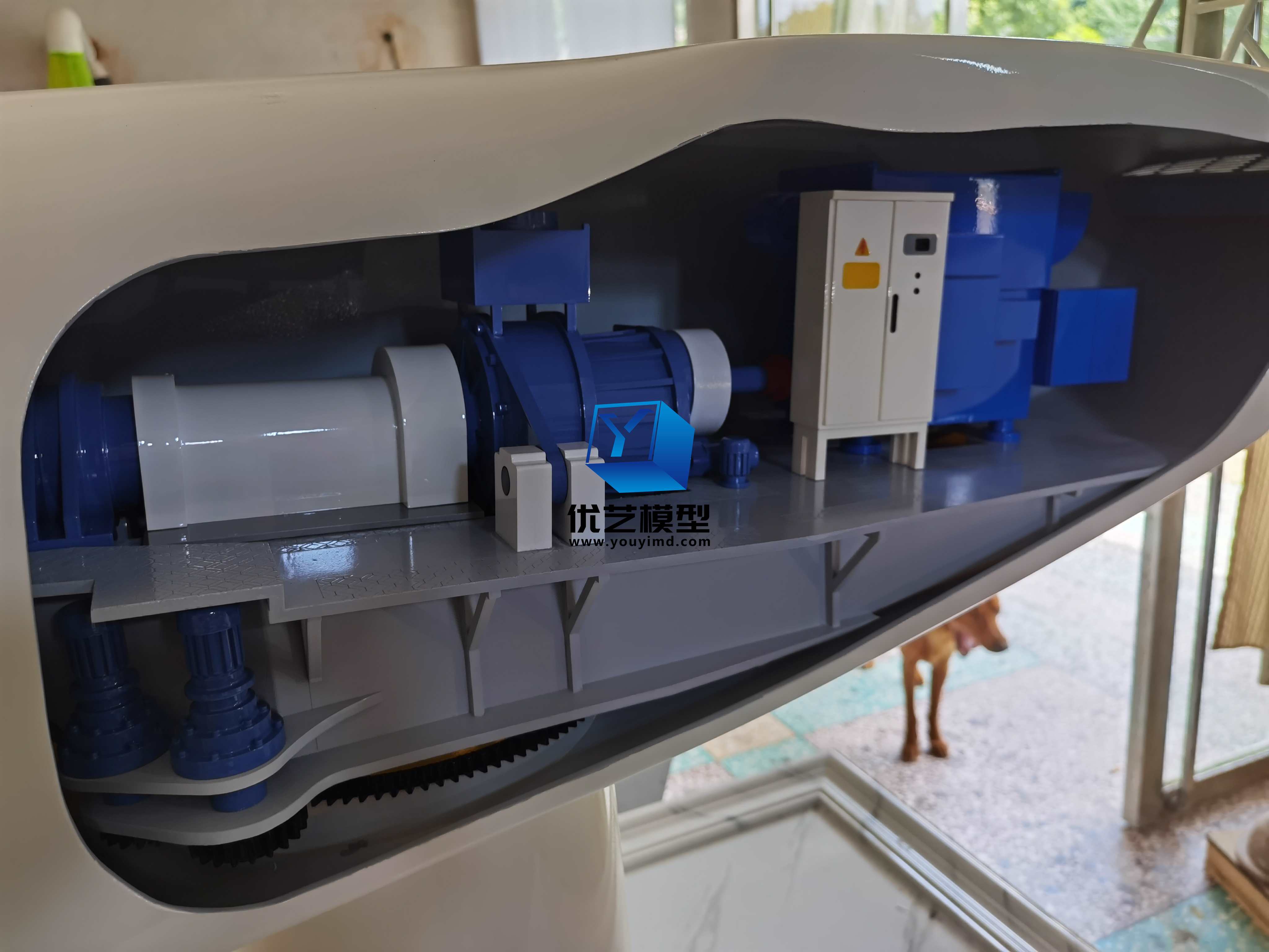 1,風(fēng)機(jī)模型整體機(jī)艙采用剖面結(jié)構(gòu),可通過(guò)剖面結(jié)構(gòu)直觀觀看到風(fēng)機(jī)內(nèi)部結(jié)構(gòu)